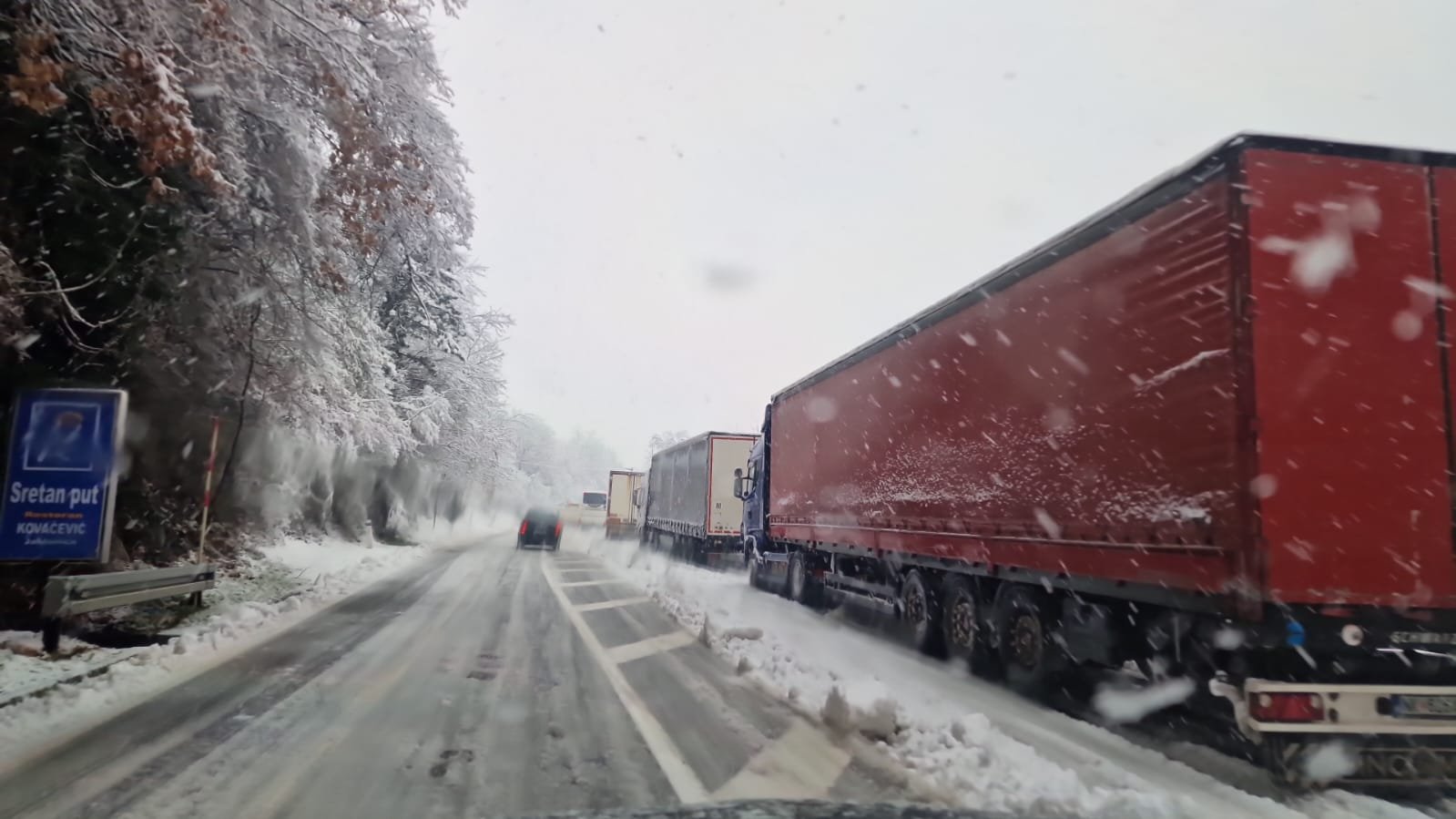 U mjestu Donja Jablanica mole se vozači za oprez, pogotovo teretnih vozila. Promet je usporen.