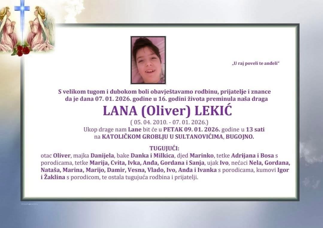 velikom tugom objavljena je vijest o smrti djevojčice Lane (Oliver) Lekić, koja je preminula...