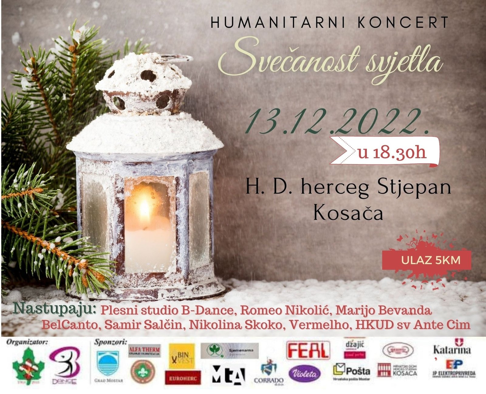 U sklopu ove manifestacije biti će upriličen i humanitarni koncert „Svečanost svjetla“ koji će se održati u utorak 13. prosinca u Hrvatskom domu Hercega Stjepana Kosače s početkom u 18.30 sati.