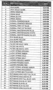 Najnižu cijenu od 6,00 KM zadržali su brendovi poput Diva Slims, Violet Slims i Drina Denifine, dok najskuplje varijante poput Dunhill Fine Cut i Lucky Strike Wild dostižu cijenu od 7,00 KM. Ostali popularni brendovi kreću se unutar tog raspona – primjerice, Drina Gold i Silver koštaju 6,30 KM, dok se cijene Dunhill Master Blend i Essence serija kreću od 6,40 do 6,70 KM.
