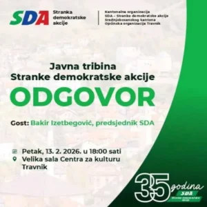 Tribina će biti održana u petak, 13. veljače, u Travniku, u velikoj dvorani Centra za kulturu Općine Travnik, s početkom u 18 sati. U okviru posjete, Izetbegović će sudjelovati na političkom skupu stranke te se susresti s članovima i simpatizerima SDA.