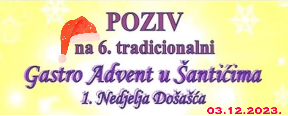 Vijesti 6. tradicionalni Gastro Advent u ŠantićimaOrganizatori NK Šantići i MZ Šantići pozivaju vas na učešće u natjecanju kuhanja Čobanca u...
