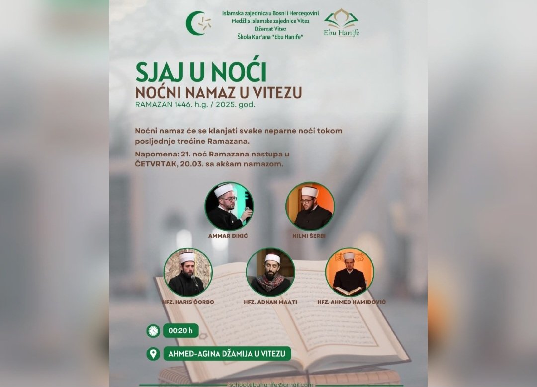 SJAJ U NOĆI: NOĆNI NAMAZ U VITEZU Ramazan je mjesec duhovne obnove, ibadeta i približavanja...