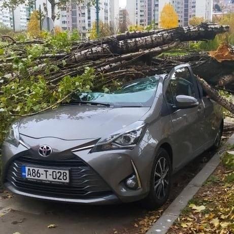 Danas je u Sarajevu jak vjetar srušio stablo i prouzročilo materijalnu štetu na više vozila....